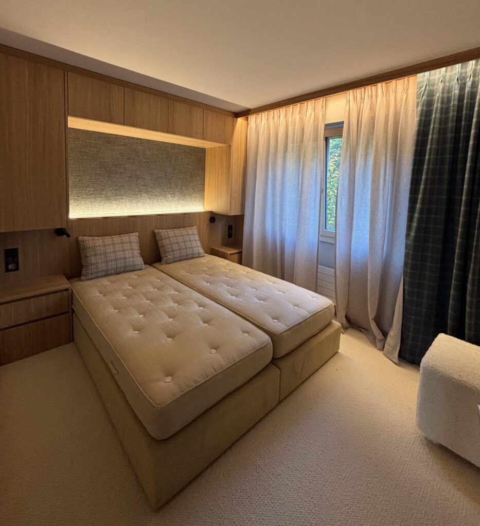 Retour Partager WhatsApp Email Facebook Informations Demander votre devis Pour ce chalet de luxe, nous avons réalisé les faux-plafonds ainsi que l’ensemble des travaux de peinture. Le chantier demandait une grande précision : seuls les plafonds entre poutres étaient à rénover. Nous avons donc méticuleusement protégé toutes les boiseries existantes, y compris les poutres apparentes, […]